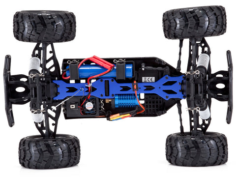 Get ready for car crushing, hill climbing, dirt flying action! The 4WD Caldera 10E monster truck is equipped with a powerful brushless motor, 3200mAh LIPO Battery, Brushless ESC, and is ready to unleash its fury. The included rechargeable LIPO battery and charger are easy to use and provide dependable fun. A durable plastic lightweight lower chassis, coupled with an aluminum upper chassis plate, provide a sturdy foundation for the Caldera 10E’s power and performance. The 305mm long wheelbase offers great stability, while four big bore oil filled shocks and adjustable independent suspension offer rock solid performance. A 2.4GHz radio system ensures control, for those ready to unleash the MAGMA-tude of the ready to run Caldera 10E electric monster truck! |